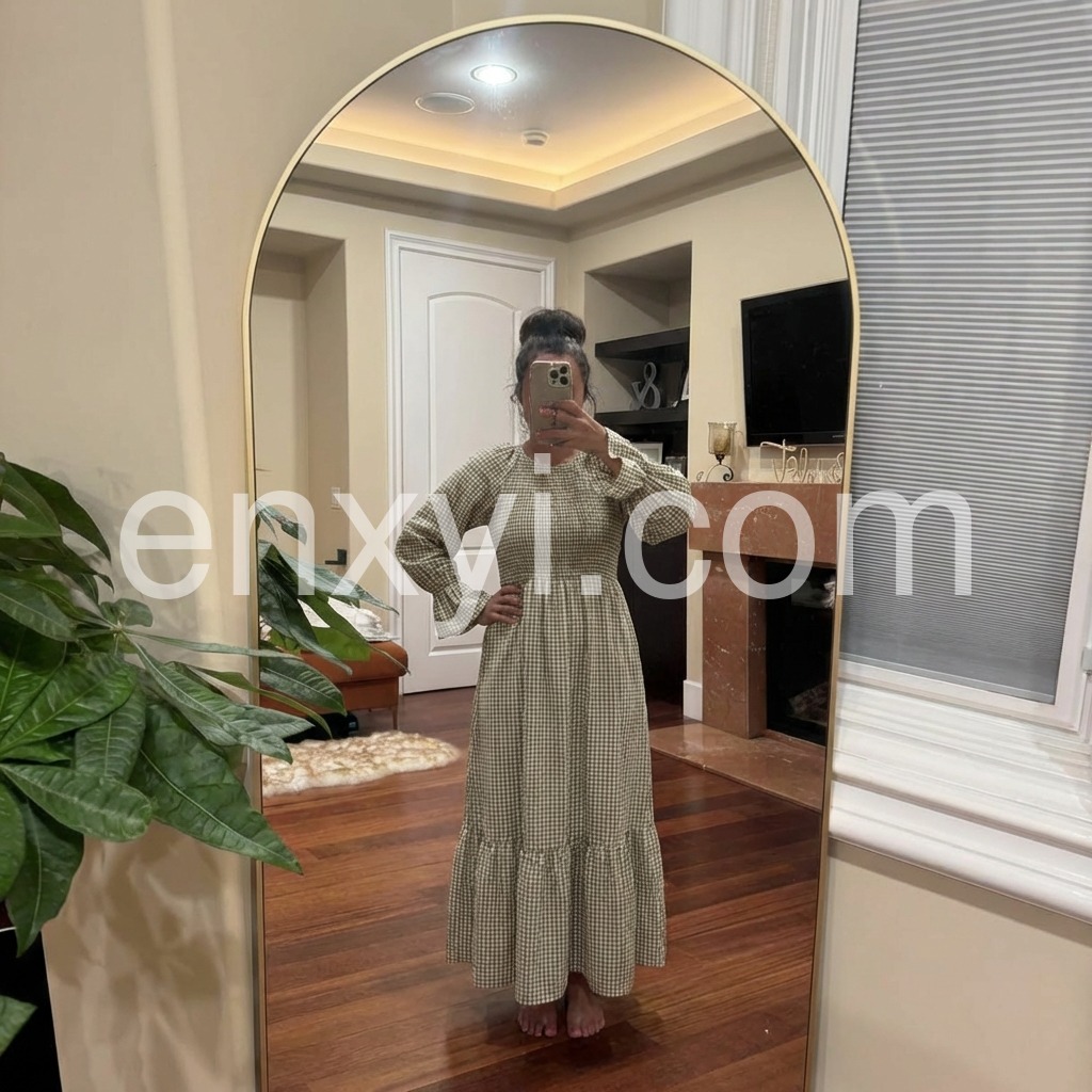Green Check Round Neck Maxi Dress