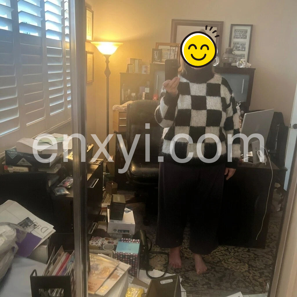 This oversized black and white checkered sweater is crafted from a soft mohair-blend knit, offering exceptional warmth and comfort. Its relaxed fit enhances layering options while the classic checkered pattern adds a timeless, sophisticated edge to any outfit. Ideal for cooler seasons, this sweater combines style with cozy functionality for a refined yet casual look.
