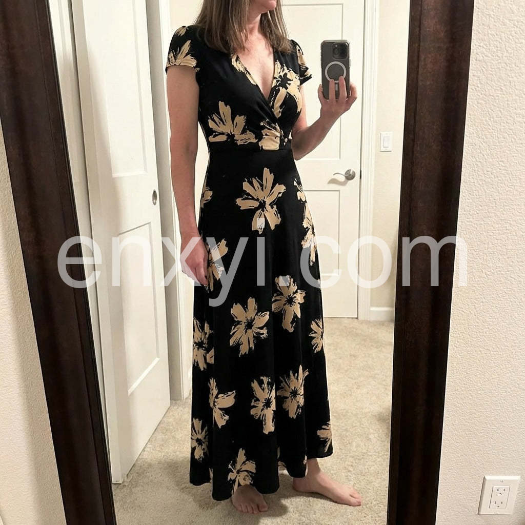 Special V-Neck Short Sleeve Maxi Dress